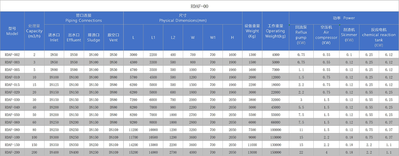 น้ำทิ้งที่ผ่านการบำบัดจะถูกนำมาใช้เป็นน้ำไหลเวียนผ่านปั๊มหมุนเวียนและเข้าสู่ถังอากาศที่ละลาย ในเวลาเดียวกันอากาศอัดจะถูกเพิ่มเข้าไปในถังอากาศละลายและการผสมโซดาน้ำที่มีประสิทธิภาพจะดำเนินการในถังอากาศที่ละลาย หลังจากผสมน้ำที่ละลายในอากาศจะถูกส่งไปยังพื้นที่สัมผัสของอากาศ แรงดันทันทีที่ปล่อยผ่านตัวรีลีเซอร์จะสร้าง microbubbles จำนวนมากซึ่งติดอยู่กับสสารระงับการจับตัวเป็นก้อนอย่างรวดเร็ว ความหนาแน่นของสสารแขวนลอยจะค่อยๆน้อยกว่าความหนาแน่นของน้ำและมันลอยไปที่พื้นผิวโดยอัตโนมัติ น้ำที่ด้านล่างของอุปกรณ์จะรีบร้อนและจะถูกปล่อยออกไปยังพื้นที่น้ำสะอาดผ่านอุปกรณ์ทางออกน้ำที่ด้านล่าง ส่วนหนึ่งของน้ำในพื้นที่น้ำสะอาดยังคงถูกนำมาใช้เป็นน้ำไหลเวียนสำหรับอุปกรณ์และส่วนที่เหลือจะถูกปล่อยออกสู่กระบวนการต่อไป ขยะที่ลอยอยู่บนพื้นผิวจะถูกคัดลอกไปยังสระว่ายน้ำโดยมีดโกนเพื่อการรักษาต่อไป
